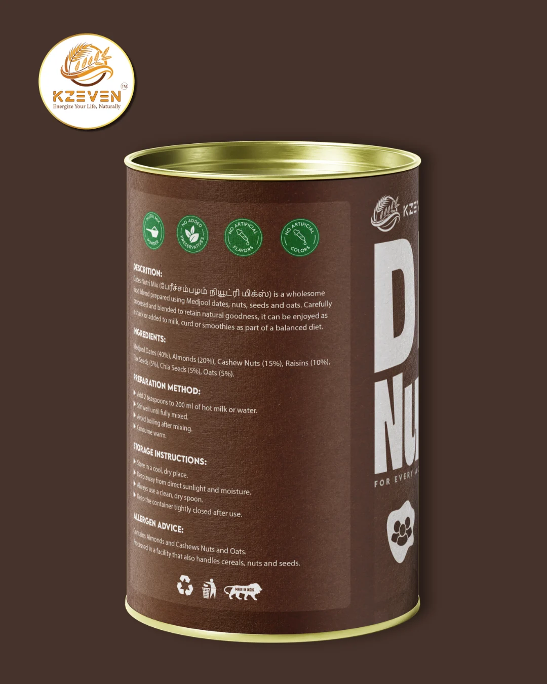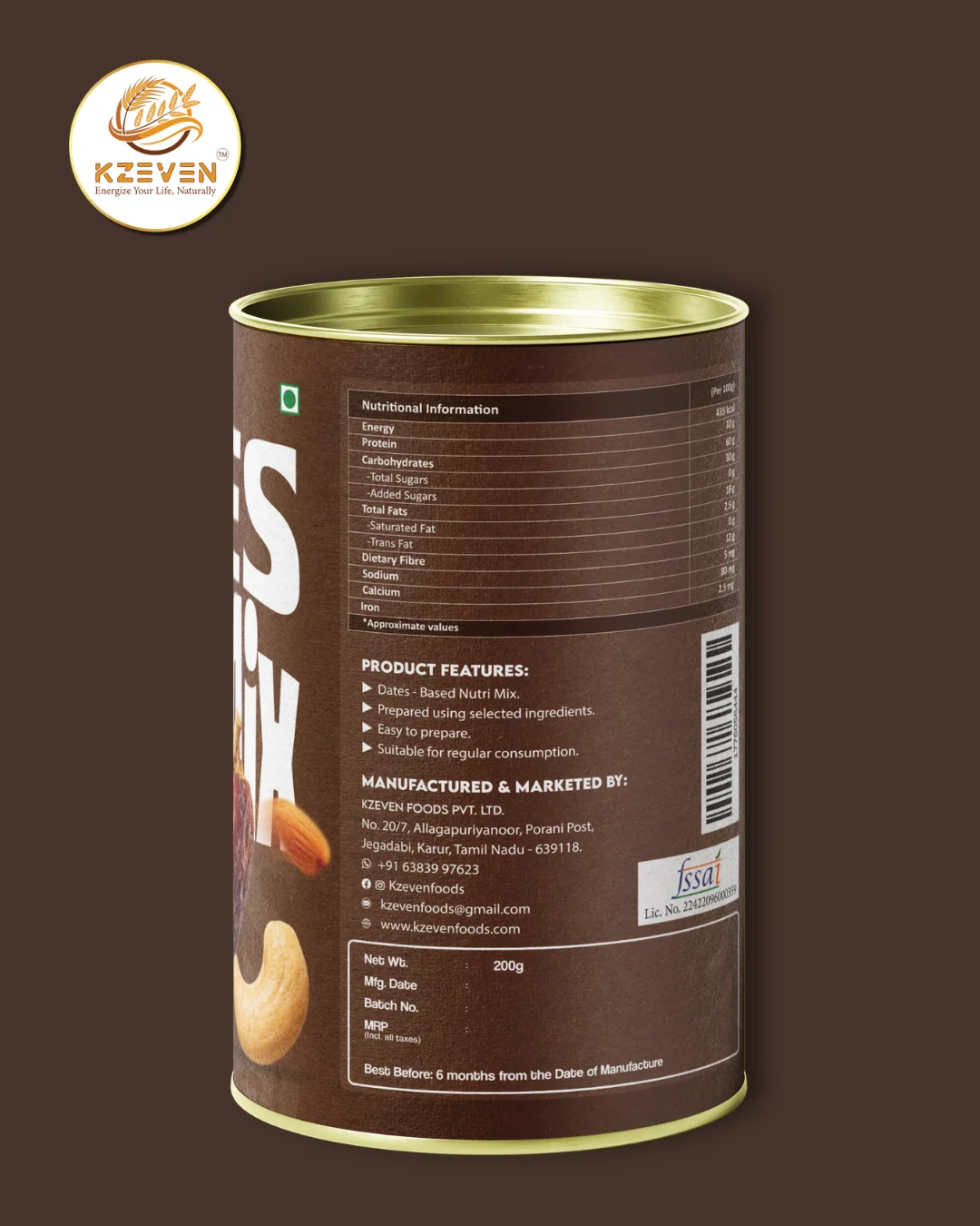 Dates Nutri Mix (பேரிச்சம்பழம் நியூட்ரி மிக்ஸ்) is a wholesome food blend prepared using Medjool dates, nuts, seeds and oats. Carefully processed and blended to retain natural goodness, it can be enjoyed as a snack or added to milk, curd or smoothies as part of a balanced diet.