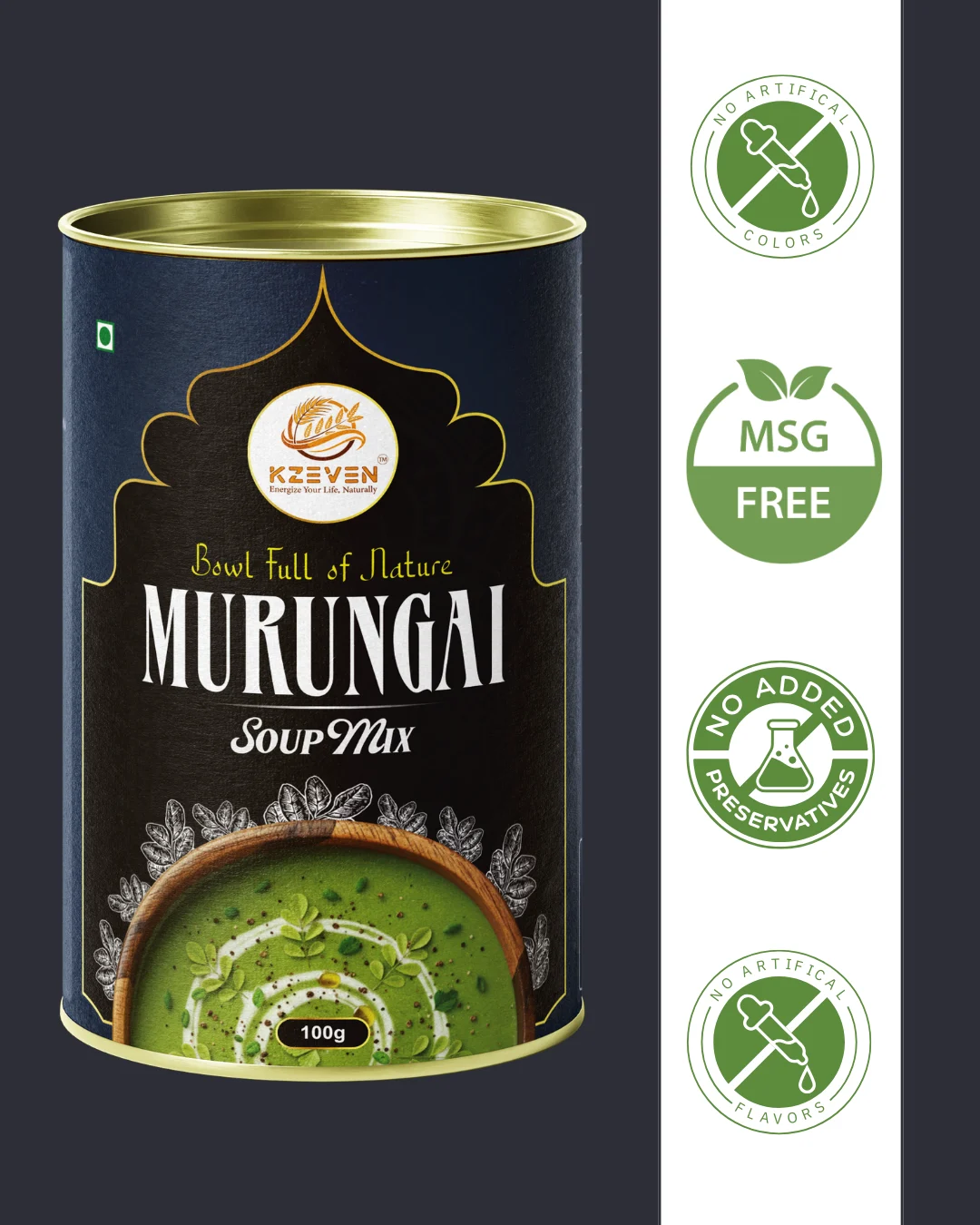 Moringa Leaf Soup Mix (முருங்கை இலை சூப் மிக்ஸ்) is a flavourful soup preparation made with moringa leaves, vegetables, and spices. Carefully processed and blended to deliver a smooth texture and comforting taste, it is suitable for regular consumption as a warm soup option.
