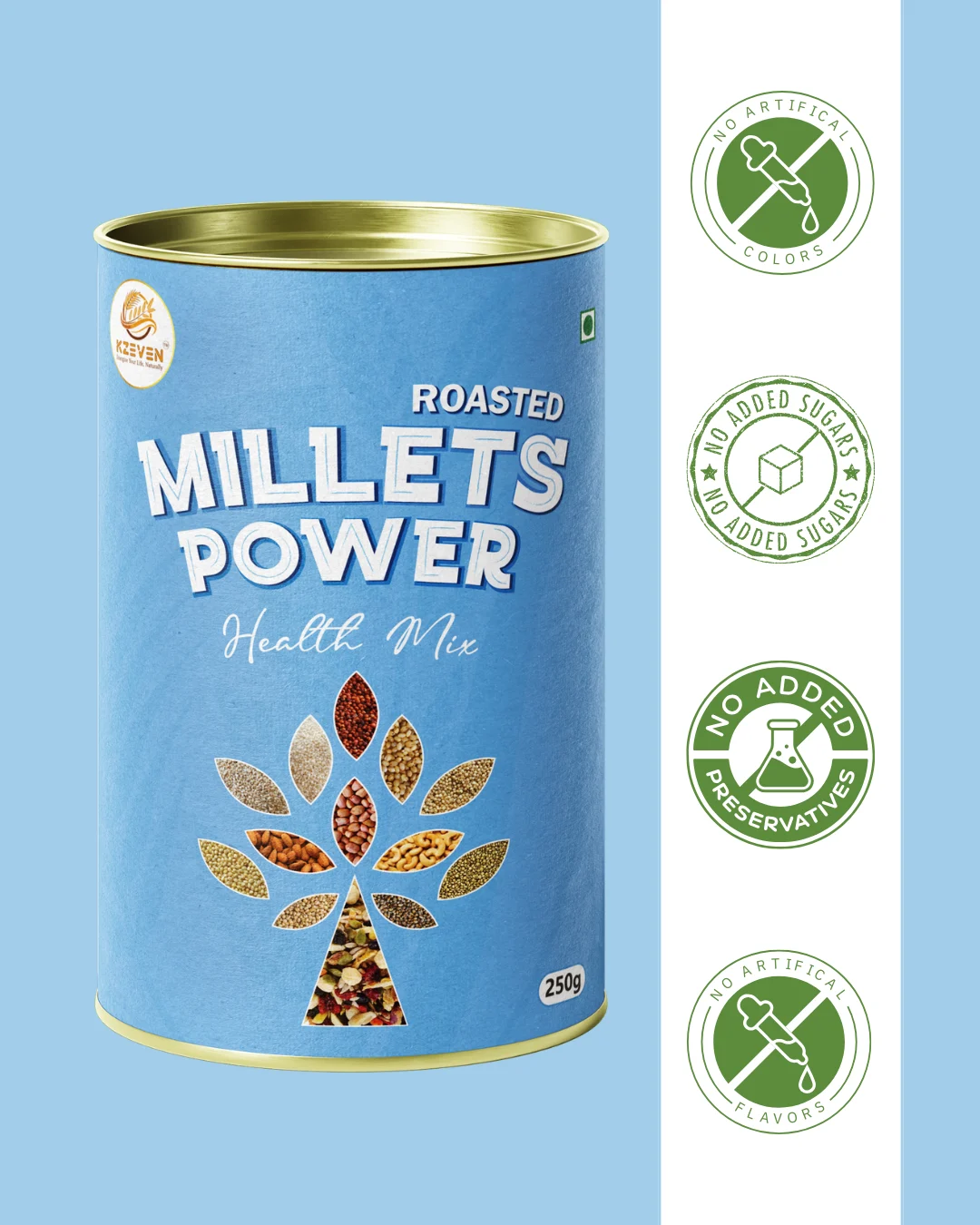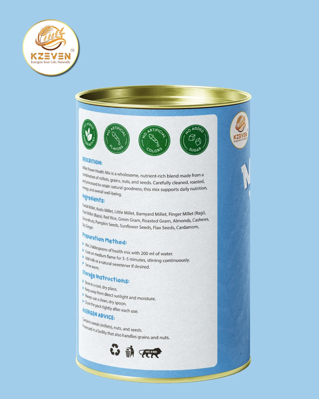 Contains cereals (millets), nuts, and seeds. Processed in a facility that also handles grains and nuts.