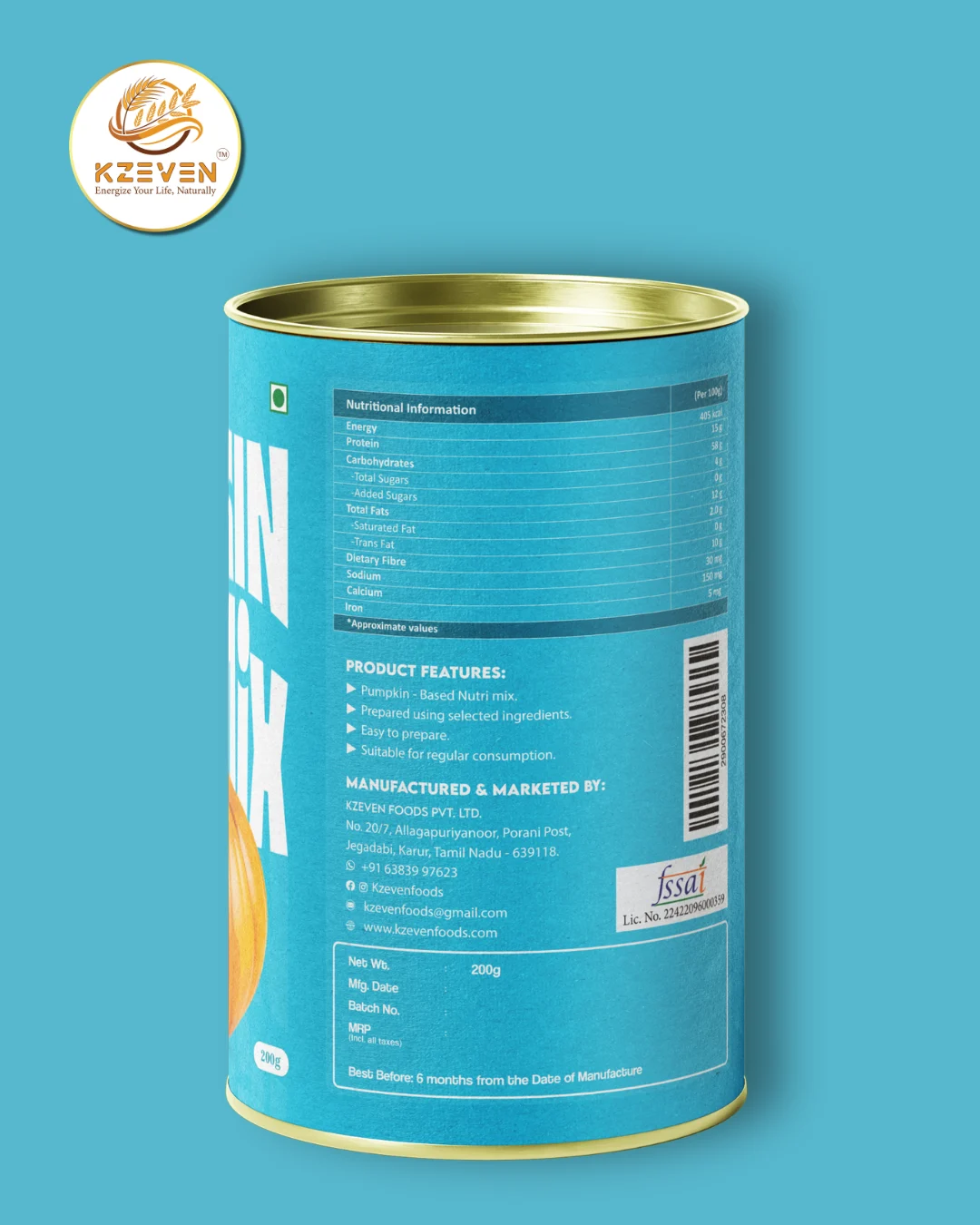 Pumpkin Nutri Mix (பூசணி நியூட்ரி மிக்ஸ்) is a wholesome food blend prepared using pumpkin, millets, pulses, nuts, seeds and traditional spices. Carefully processed and blended to retain natural goodness, it can be consumed as a warm beverage as part of a balanced diet.